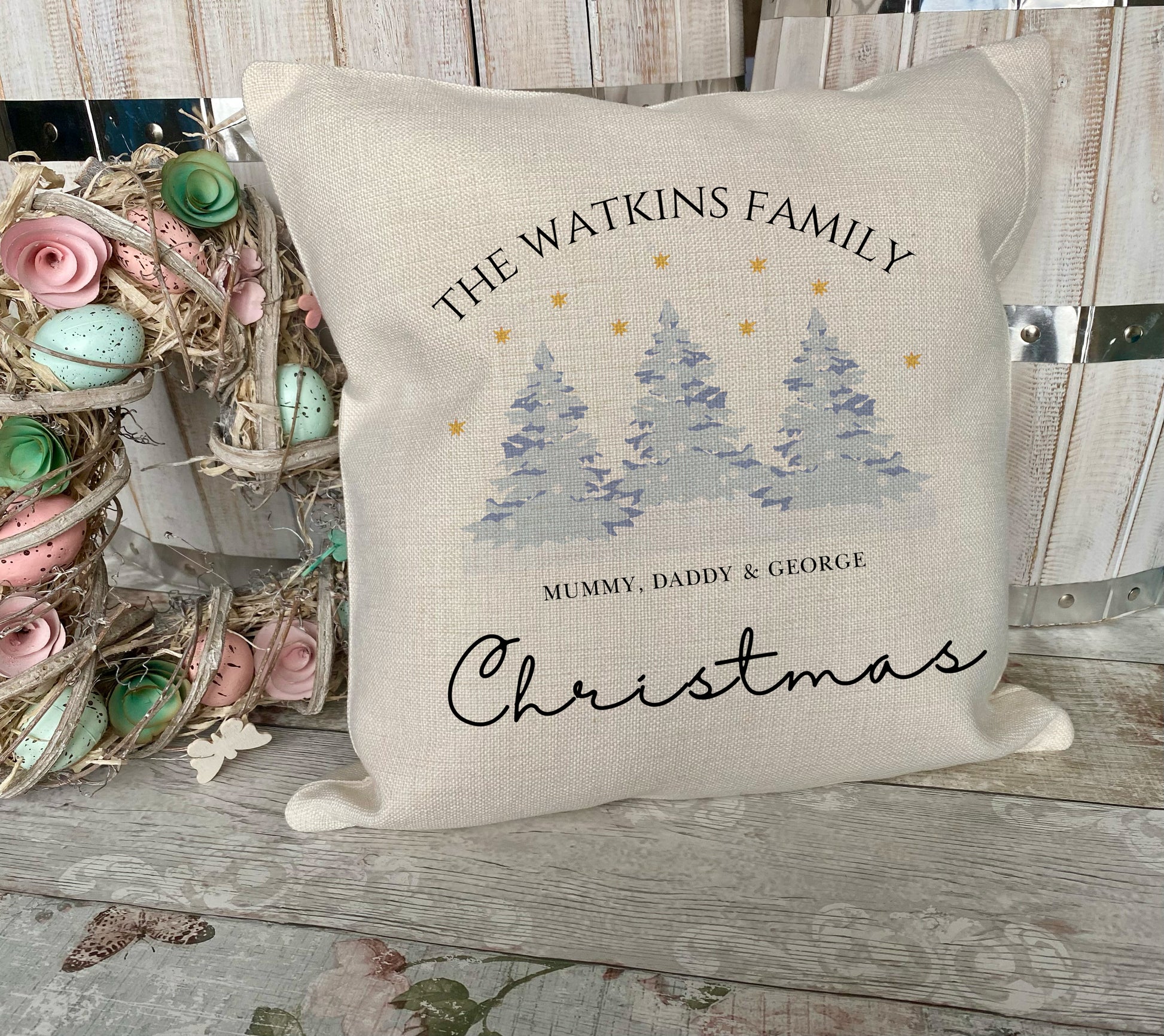 Add a festive touch to your home with this Christmas Family Tree Cushion, the perfect keepsake for celebrating your first Christmas as a family. Ideal as a baby’s 1st Xmas gift, this cosy and decorative cushion can be personalised with your family name and names to create a truly unique piece of Christmas decor.