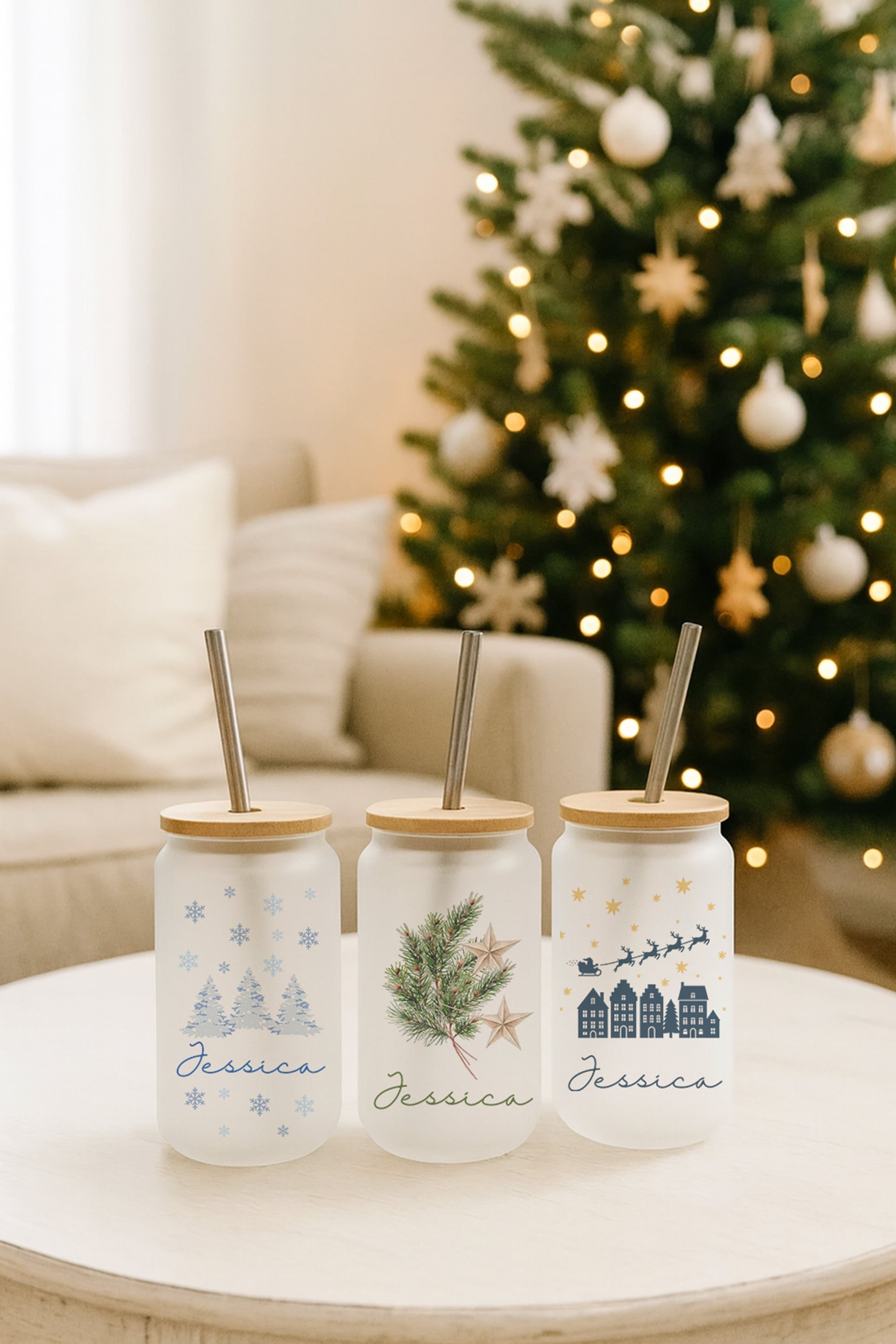 Personalised Christmas Drinking Glasses – Festive Tumblers with Straw 🎄🥤✨