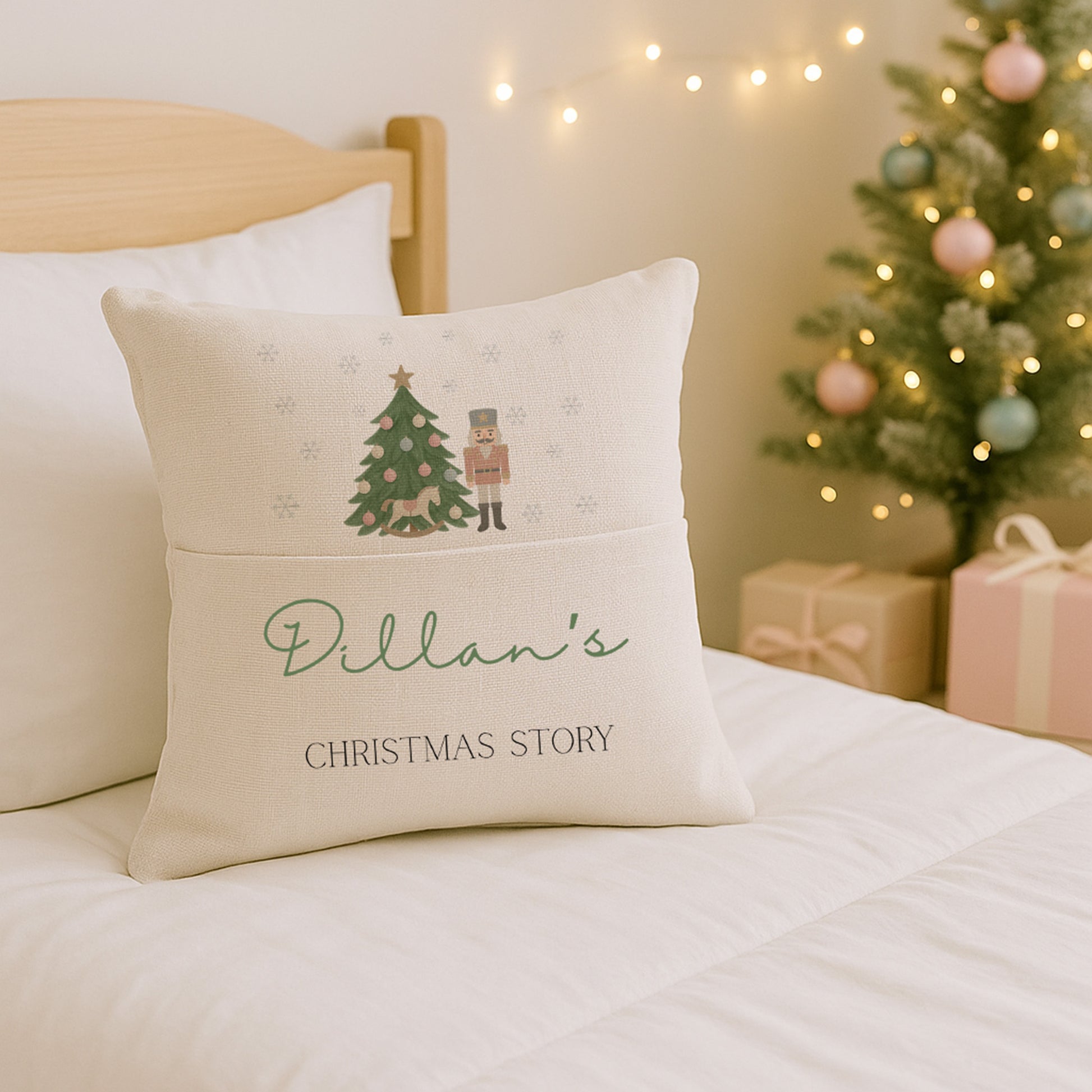 Make story time magical with this Personalised Christmas Story Book Cushion, a festive keepsake perfect for cosy nights by the tree. Designed with charming Ballerina, Nutcracker, or Santa themes, this cushion features a handy pocket for holding a favourite Christmas book or bedtime story.
