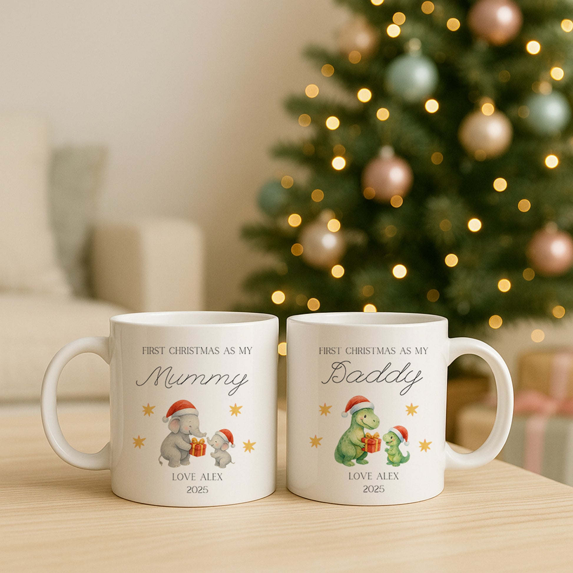 Celebrate a magical milestone with this Personalised First Christmas Mug, the perfect keepsake for Daddy, Mummy, Grandad or Nanny. Choose from an adorable elephant or dinosaur design to make this festive mug extra special.